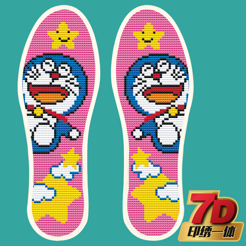 Pinhole Cross embroidered embroidery Precision printed pure cotton semi-finished products not to fall color happy wedding men and women breathable cloth insoles-Taobao