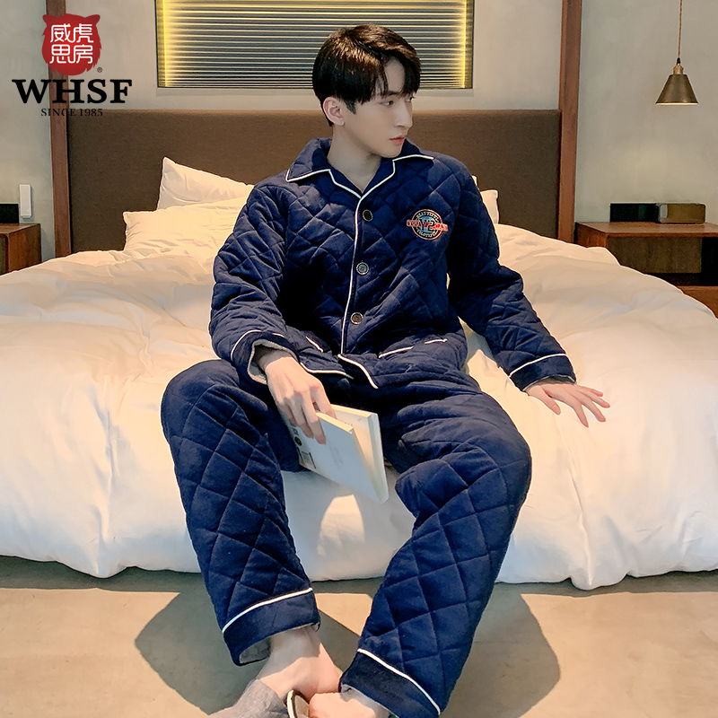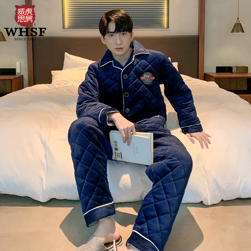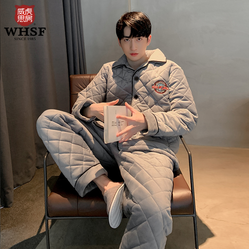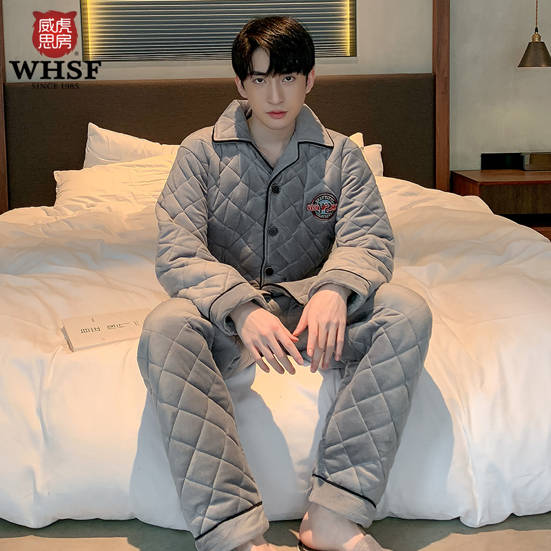 Weihu Sifang Sleeping Men's winter three-layer thickened warm clip cotton pure color minimalist for men's home suits suit