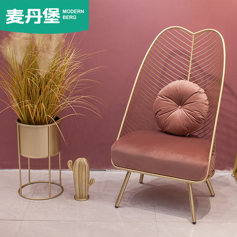 Light and luxurious casual chair minimalist modern American tennis red ins Home Living room Balcony Golden Iron Art Single Sofa Chair