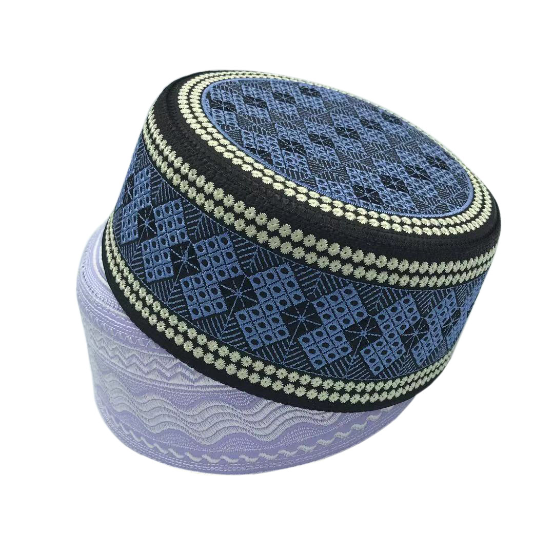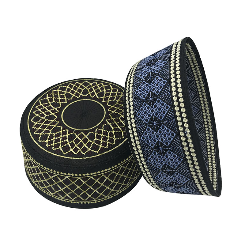 Worship cap men's new back to people hats flat top round side Blue and white boutique embroidered back to Saudi Xinjiang hat
