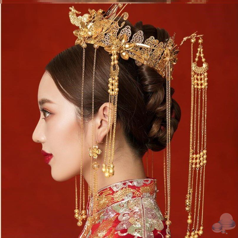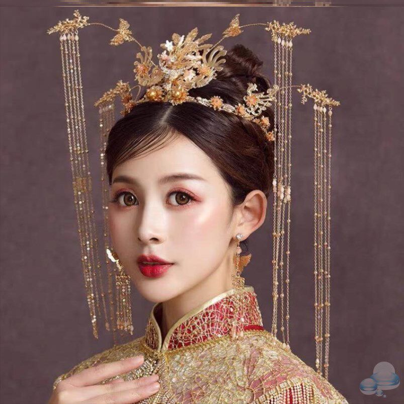Ancient dress suit ethnic wind Chinese bridal headwear earrings adorned with sweet and beautiful wedding rings Crown Big Red 2020