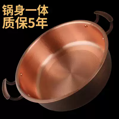 Copper hot pot pure copper thickened household induction cooker flat-bottomed Old Mandarin duck pure copper hot pot gas soup pot special pot