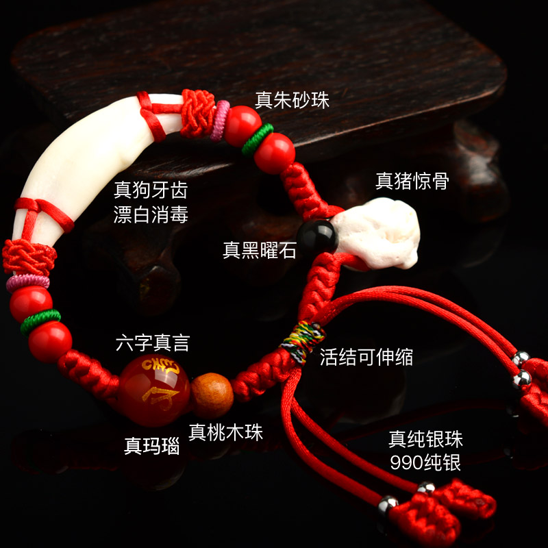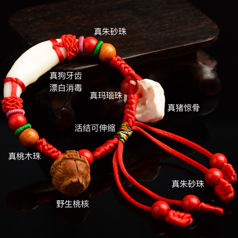 Peach core basket Peach wood child baby baby evil hand chain Pig shock bone pressure shock anti-scare child female red rope dog teeth
