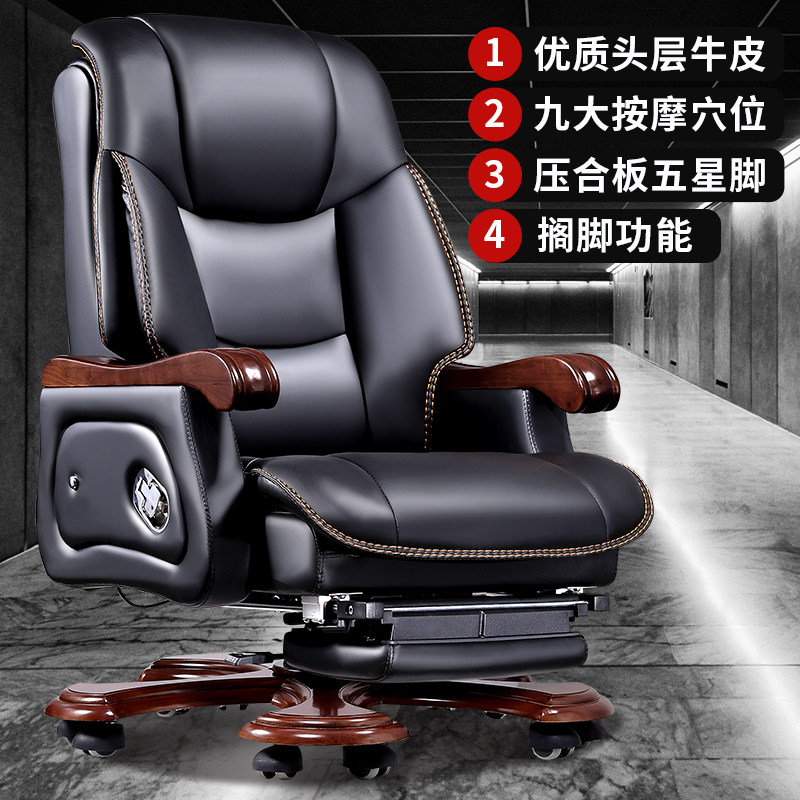 Boss Chair Business Genuine Leather President Office Chair Sub-Massage Chair Cow Leather Large Class Chair Solid Wood Can Lie Computer Chair Home-Taobao