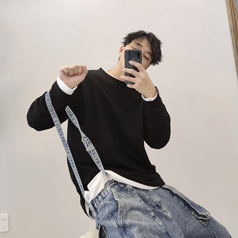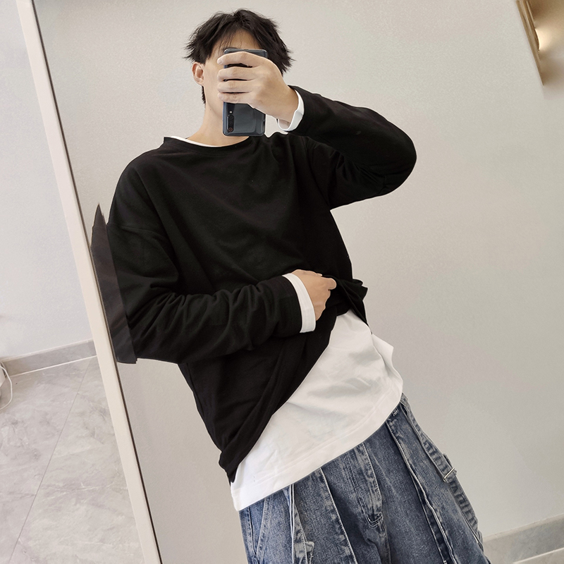 Autumn and winter simple and versatile inner wear white handsome terry pure cotton solid color round neck underwear long-sleeved T-shirt male couple