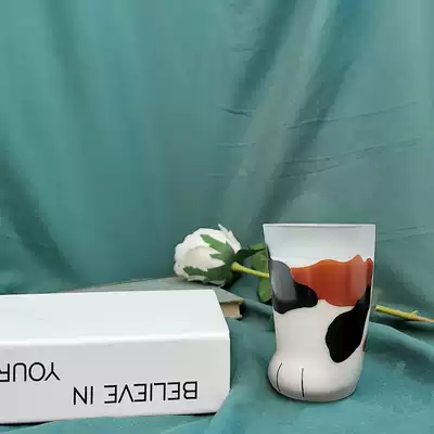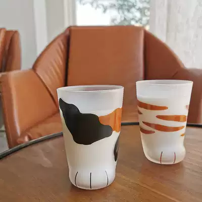 Douyin same Japanese imported Cute Cat Claw Cup glass frosted cat foot cup milk glass nitrate Cat Claw Cup
