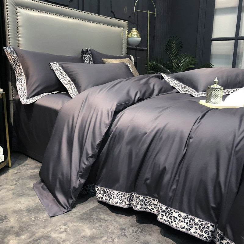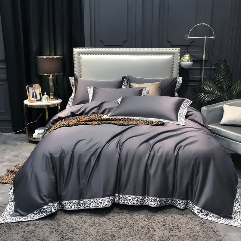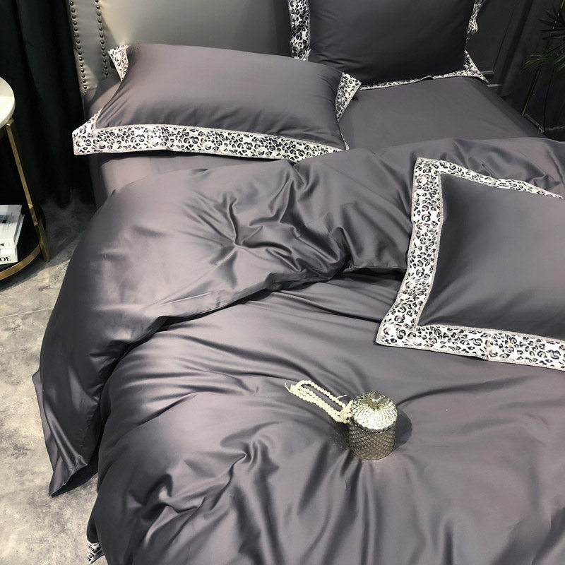 Digital push 60 satin long - color cotton simple pure cotton sheets are set on four suites