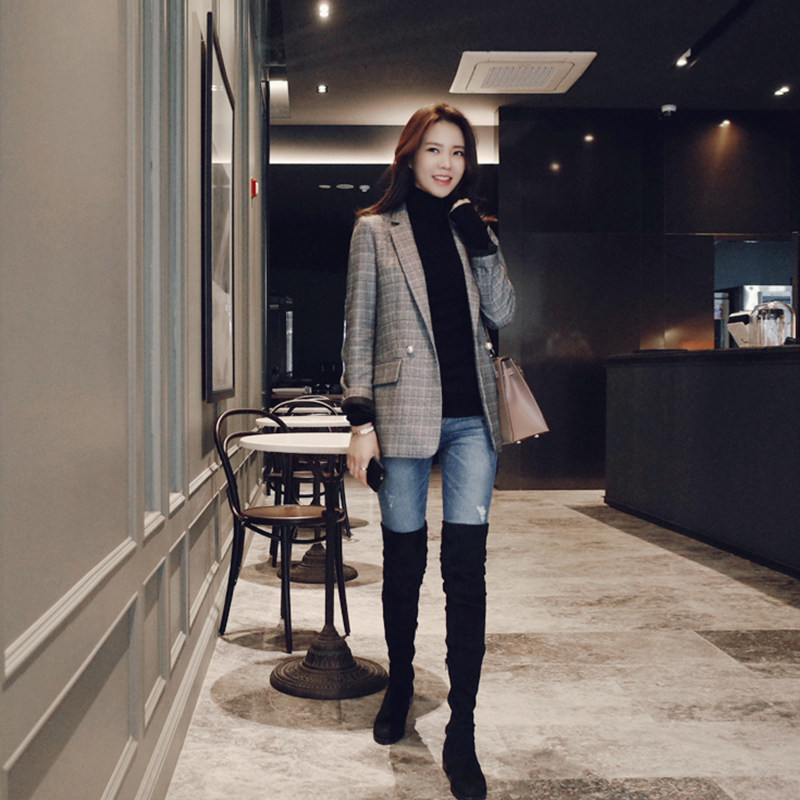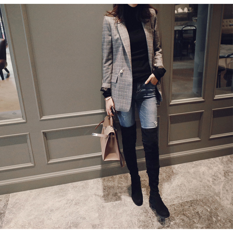 Small suit coat female spring and autumn Han edition loose thin medium and long version of English wind and leisure port suit