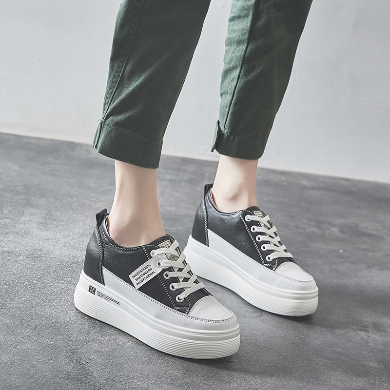 Thick-soled muffin small white shoes women's inner height increase 8cm slim white shoes genuine leather all-match casual shoes 2022 new