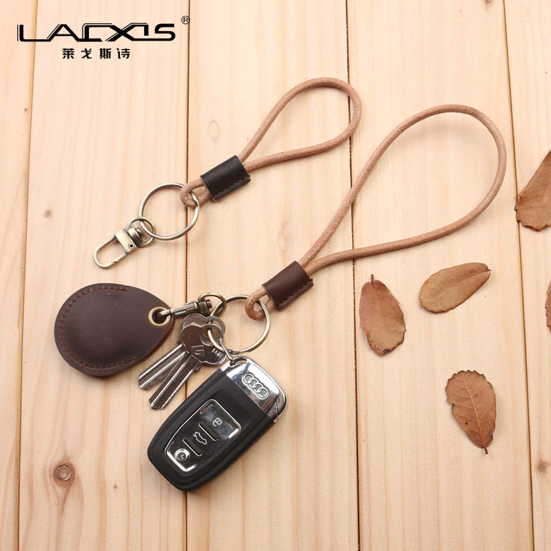 LAXS Car Key Buckle Genuine Leather Brief Bull Leather Rope South Korea Wrist Spoon Ring Creative Gift Lock Spoon Custom
