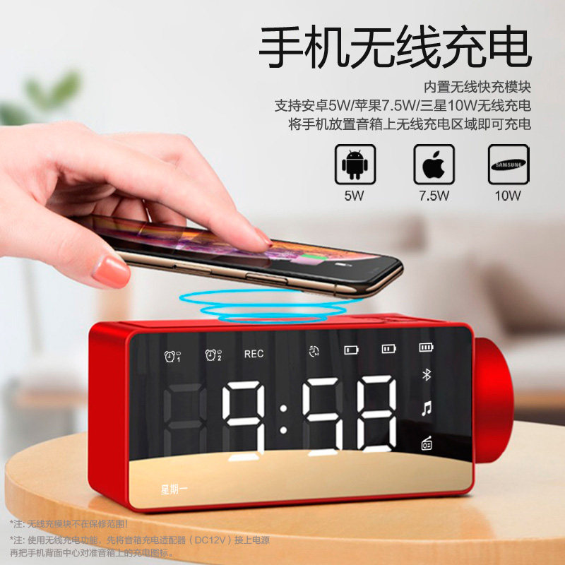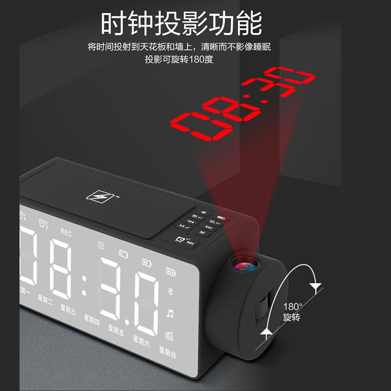 Basha red projector clock double alarm can record mobile phone wireless charging Luxury black projector clock double alarm can record mobile phone wireless charging