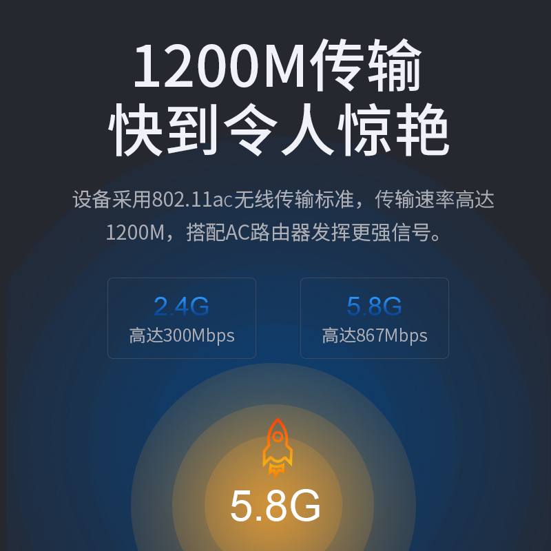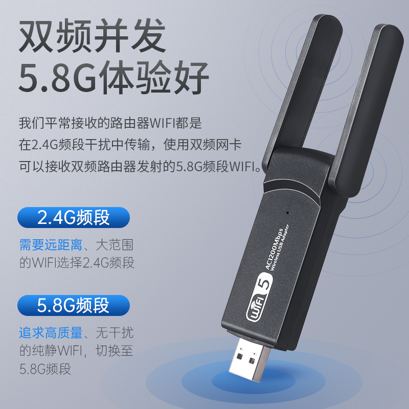 1200M Gigabit 5G dual-band Wi-Fi wireless network card USB Desktop computer computer WiFi receiver Notebook external network-free cable Unlimited network High-power host signal transmitter