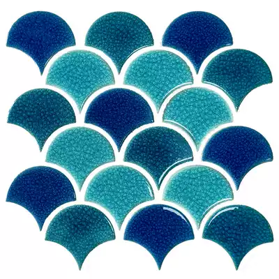 Fan-shaped ceramic fish scale ice crack mosaic tile Swimming pool Pool bathroom kitchen high-end background wall net red brick