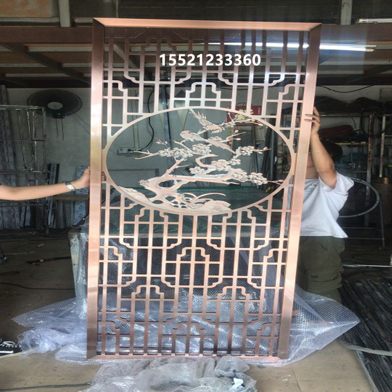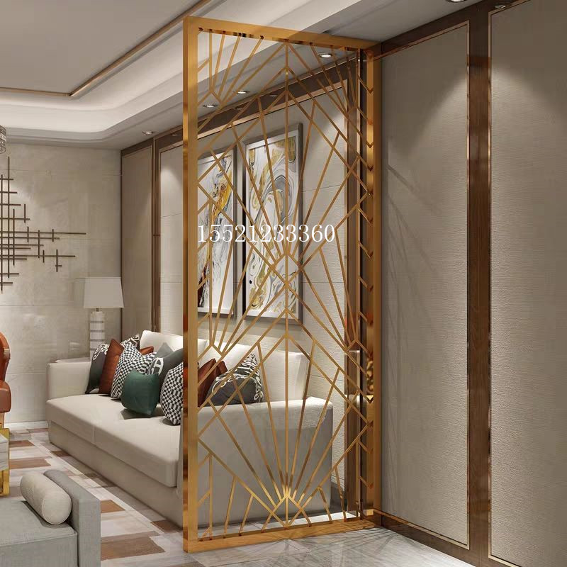 Titanium stainless steel hotel screen background wall partition light luxury living room copper color aluminum carved openwork grille entrance