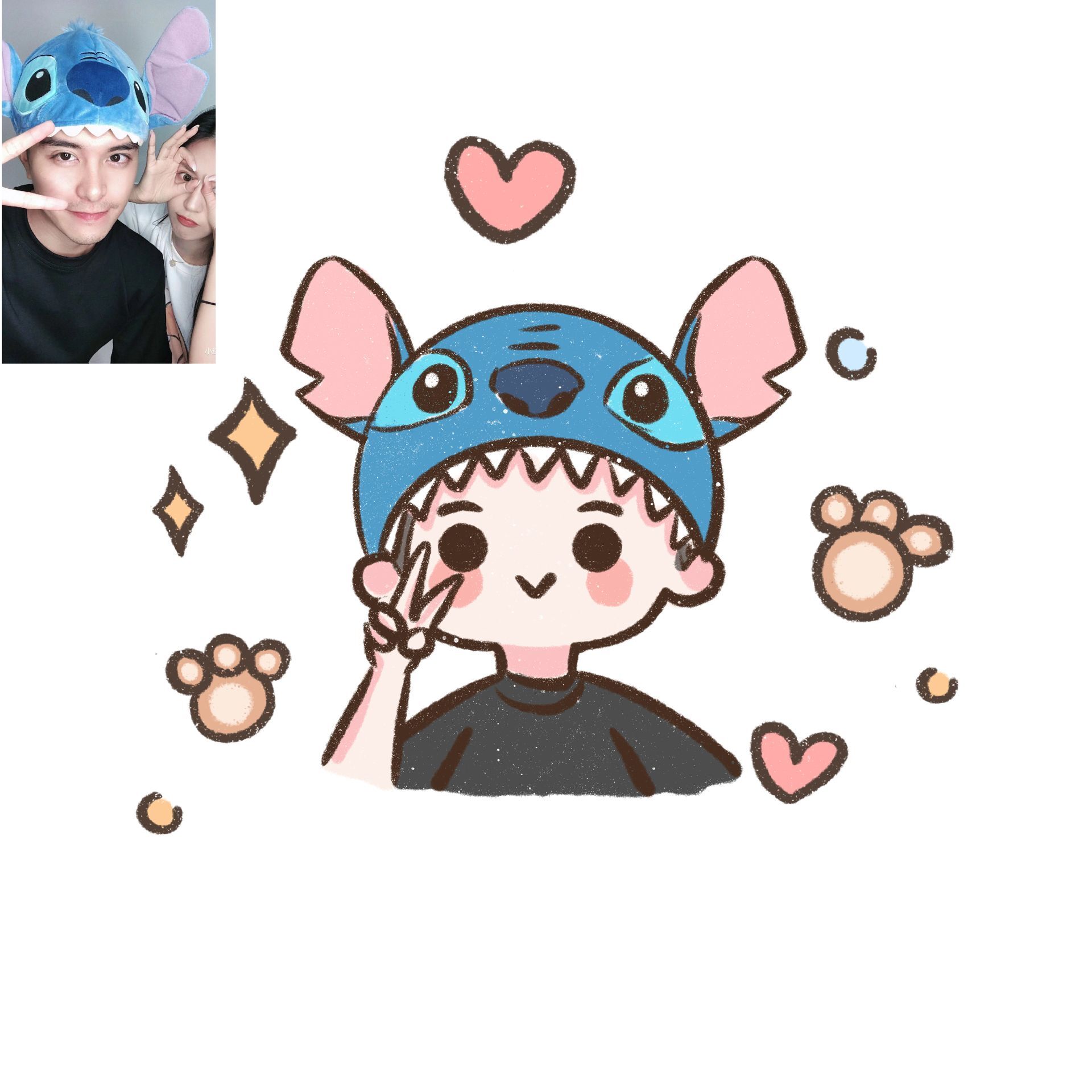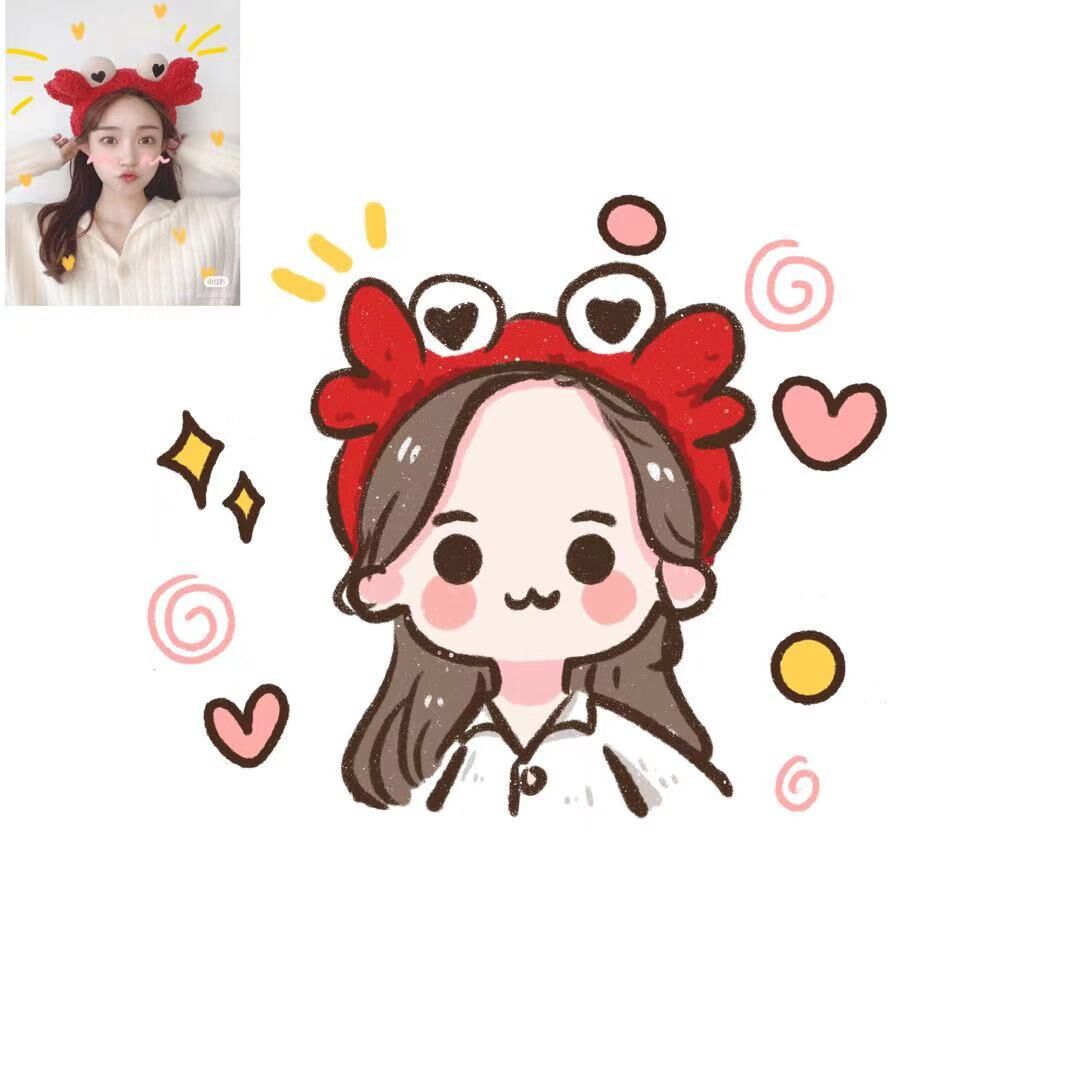 Hand-drawn cartoon cute crayon couple avatar Q version mobile phone case pattern custom cute wind live person photo turn hand-drawn