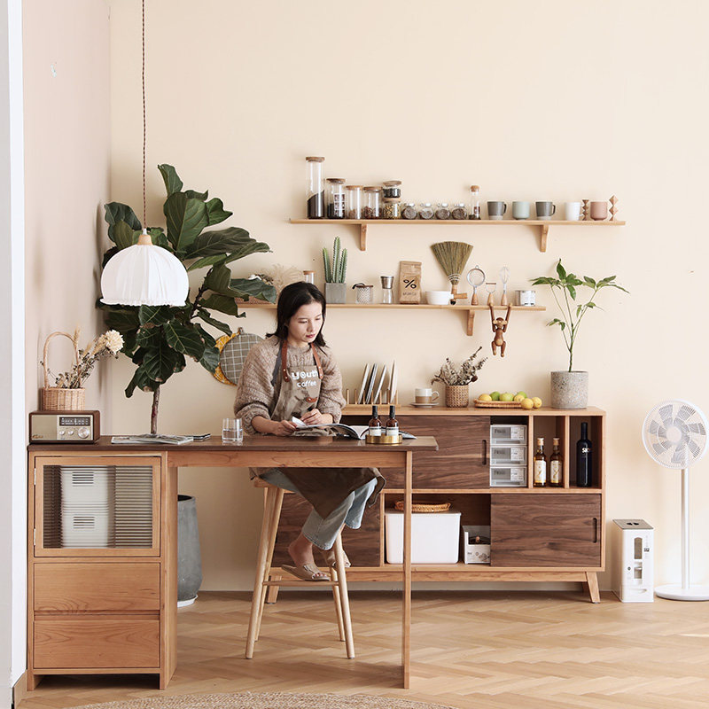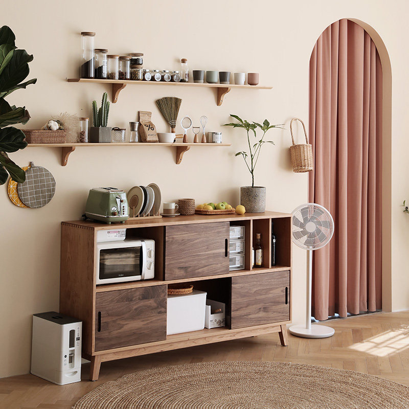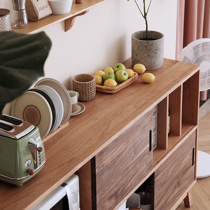 Nordic solid wood sideboard home multifunctional modern minimalist black walnut cupboard microwave kitchen Japanese cabinet