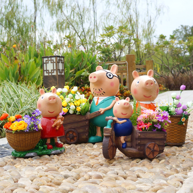 Garden Decoration Courtyard Cartoon Small Pig Petch Flower Cylinder Swing Piece Outdoor Garden Landscaping Creative Potted Flower Pot Sculpture