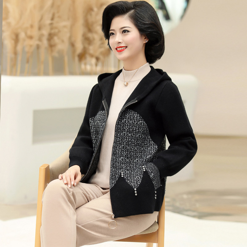Mom fashion spring and autumn short coat 2021 new middle-aged and elderly women spring dress style large size hooded jacket jacket
