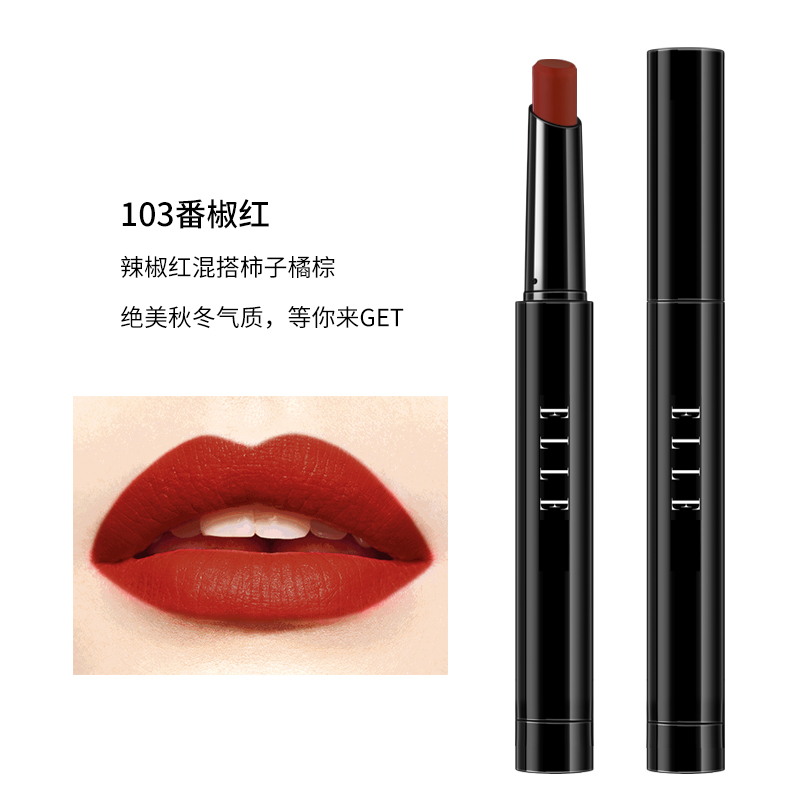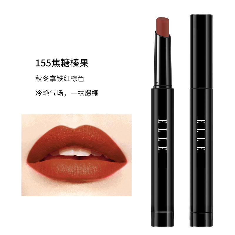 ELLE Fashion Slim lip cream New color half matt makeup effect matte lipstick lipstick lipstick Red Milk Tea Caramel Color