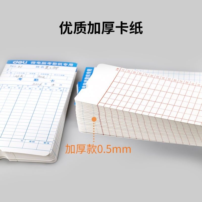 Deli attendance card jam paper employees go to work punch card machine punch card card thick white universal double-sided microcomputer clock card workshop handwritten attendance machine with non-thermal attendance card table 100 pieces