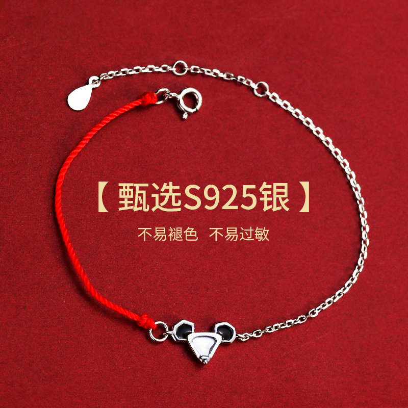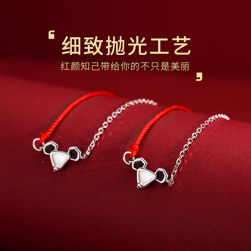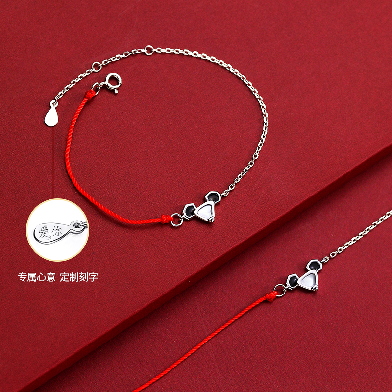 Rat year Year Hand-made Female Pure Silver Red Rope Bestie Duo's minimalist student Mori lettering original design