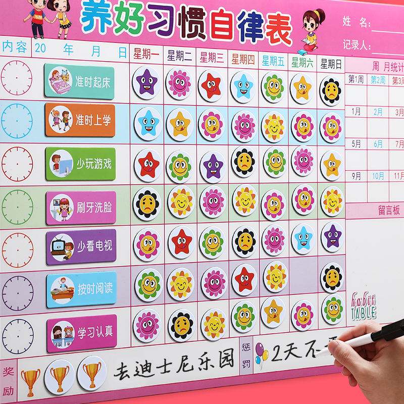 Children Self-discipline Table Growth Self-discipline Table Magnetic Home Reward Stickers SELF DISCIPLINE WATCH GOOD HABIT FORMATION SCHEDULE ELEMENTARY SCHOOL CHILDREN TODDLER LIFE RECORD TABLE BABY LEARN GOOD TO GET INTO IT