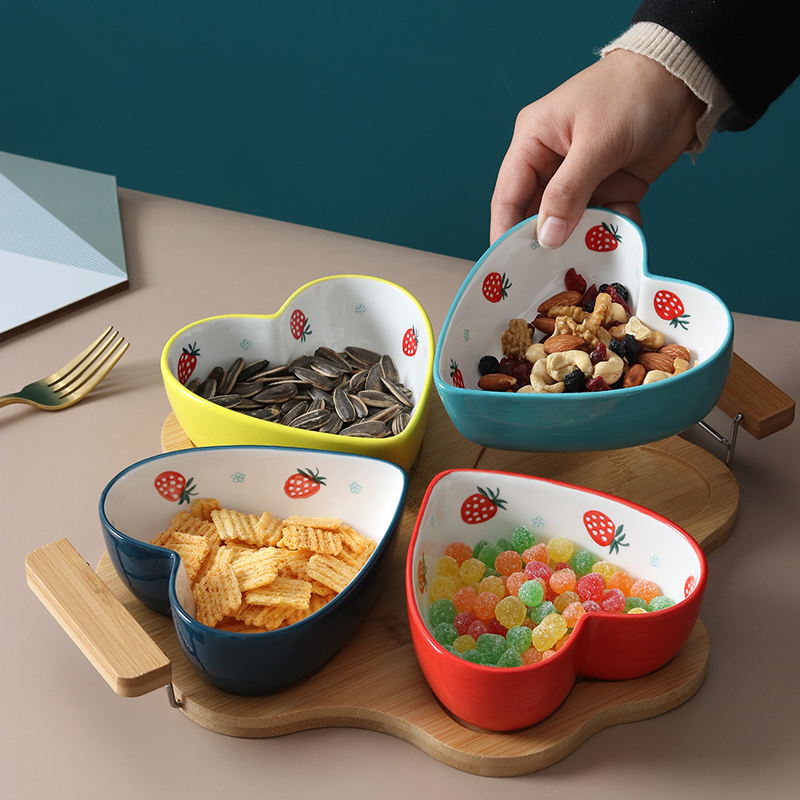 Candy Plate Ceramic Snack Bowl Tea Bowl Combined Tray Self-Dry Fruit Disc Dessert Hand Drawberry