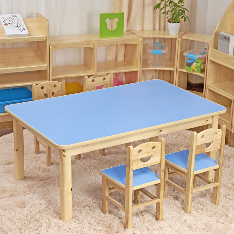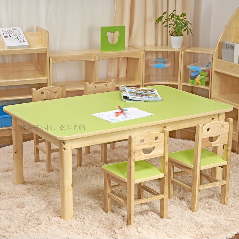 Kindergarten solid wood table and chair set children widening learning and writing rectangular table early education training institution art table