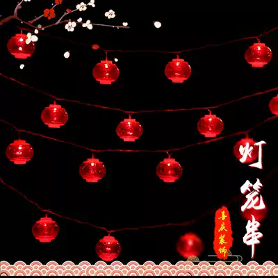 New Year Spring Festival plug-in crystal luminous LED small red lantern string Spring word Chinese knot light string Indoor scene decoration