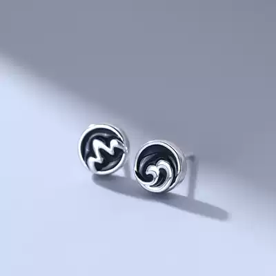 Couple ear pins female sterling silver pair of couple models single men's 2020 new trendy earrings male niche design sense
