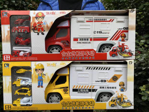 Cheng Lemei DIY Fire Farmer Police Engineering Racing Alloy Car Container Track Deformation Parking Lot Toys