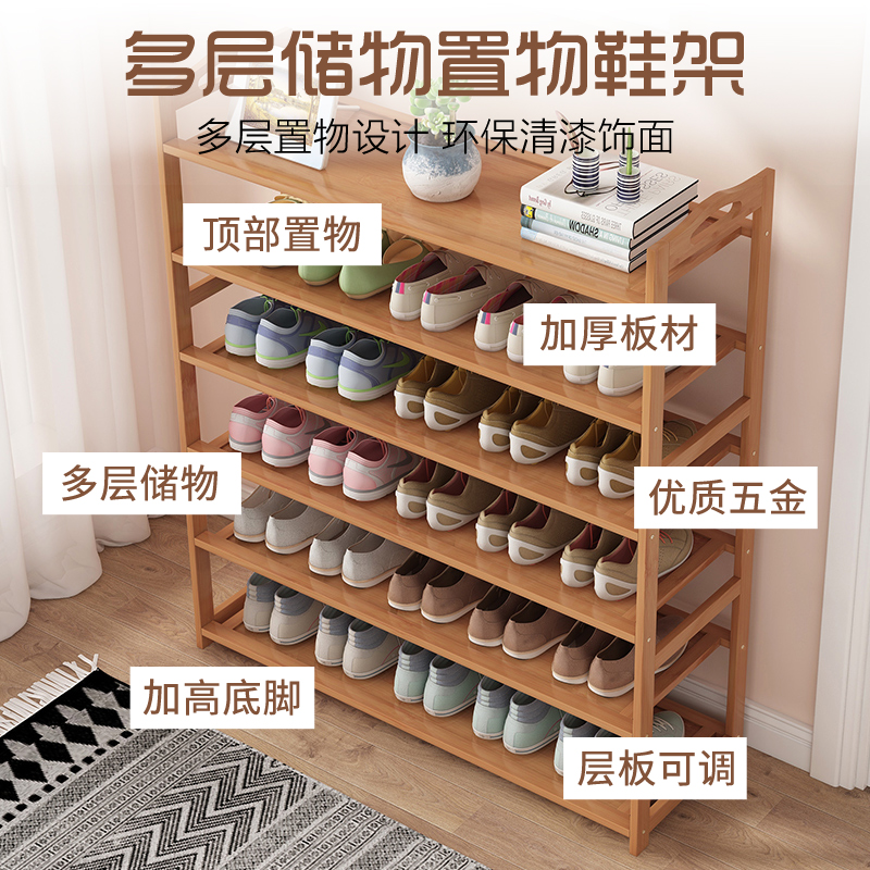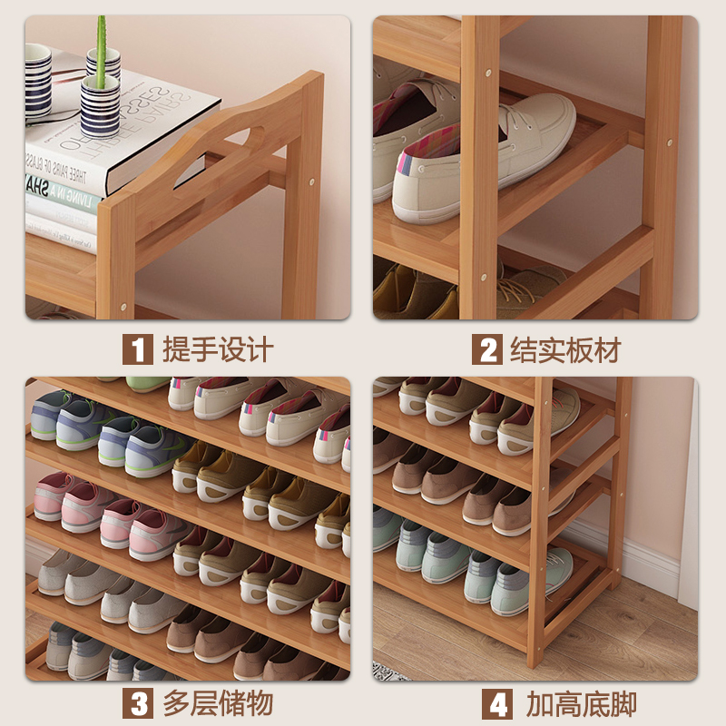 Shoe rack Sub-simple doorway multilayer solid wood bamboo storage Shelf Dust-proof Dormitory Household Large Capacity No Door Shoes Cabinet-Taobao