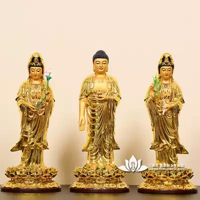 Western three saints resin paste gold Buddha statue decoration Amitabha Buddha indoor worship Shakyamuni Buddha Buddha statue craft gift decoration