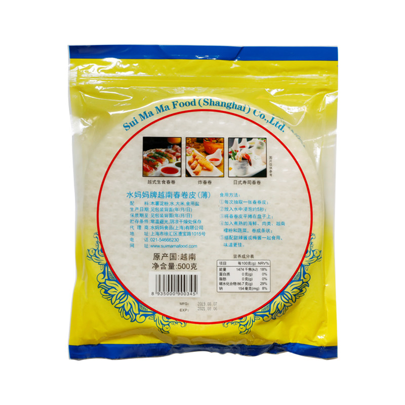 Round spring roll 200g Square spring roll 200g Square Spring roll 340g Round Spring roll 340g (ultra-thin) Round spring roll 500g Round spring roll 5