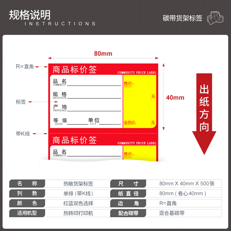 Heat transfer commodity shelf tag 80*40*500 black mark barcode vendor Supermarket price tag price label brand printing cardboard products printing cardboard product information brand printing