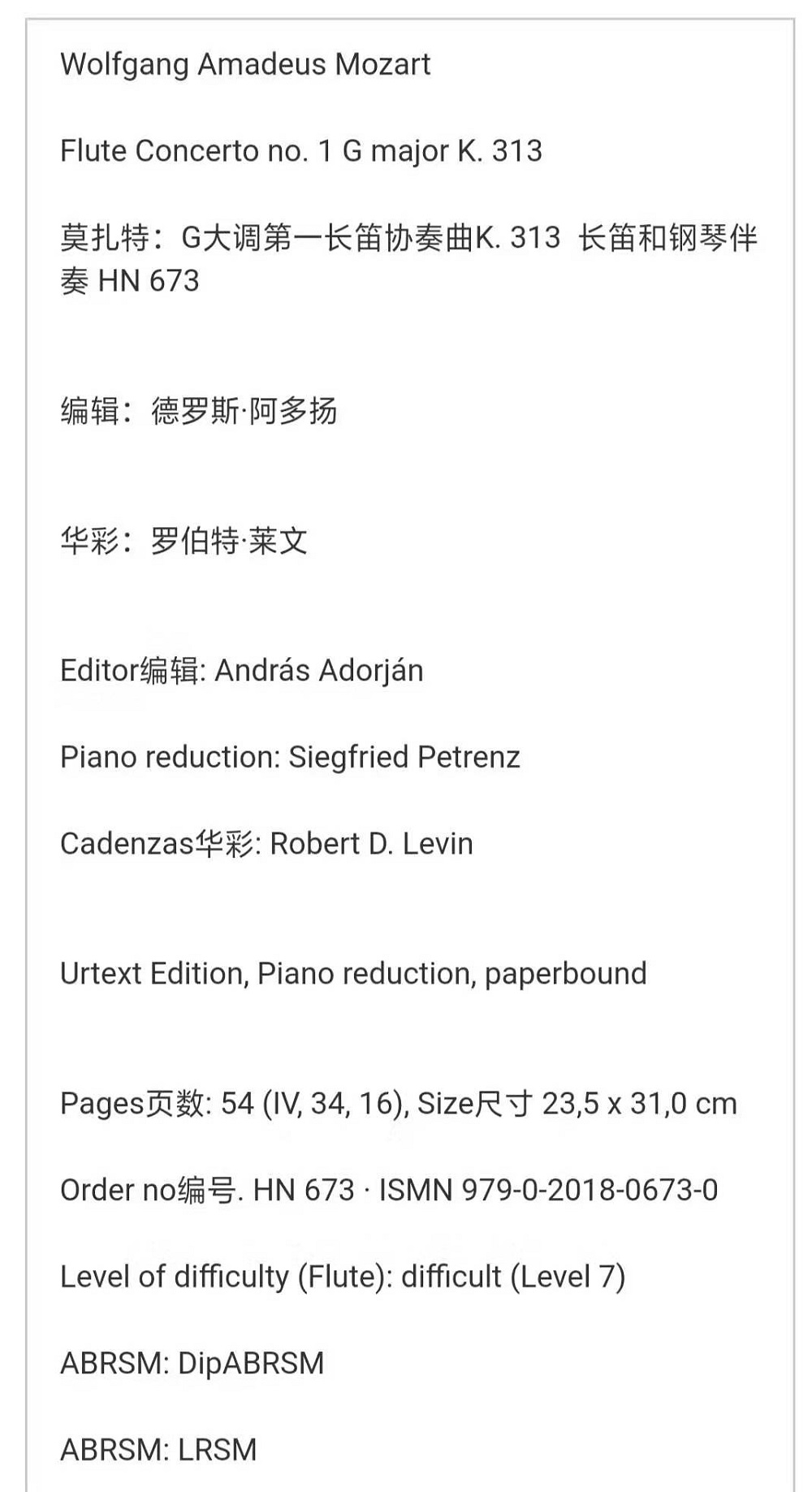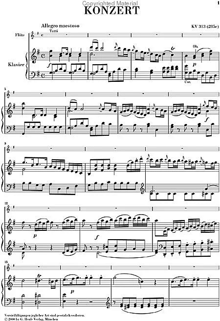 Mozart Flute Concerto No 1 in G major, K 313 with piano Accompaniment, German Original score by Henle Mozart Flute Concerto No 1 in G major, K 313 with Piano Accompaniment, German Original score by Henle Mozart Flute Concerto No 1