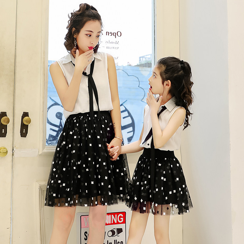 Net red parent-child summer dress 2021 new mother and daughter cotton and linen shirt tide short skirt foreign style small fresh fashion suit