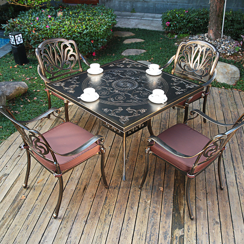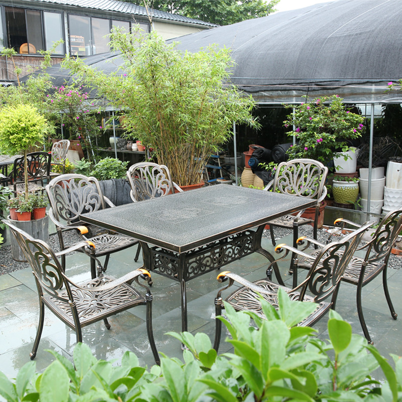 Outdoor table and chairs Courtyard Villa Rectangular Table Terrace Garden Balcony Casual Table and chairs Combined outdoor cast aluminium dining table and chairs