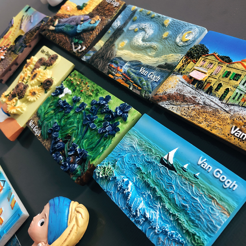 Oil refrigerator with Van Gogh famous painting magnetic stamps refrigerator door decoration resin refrigerator postmessage