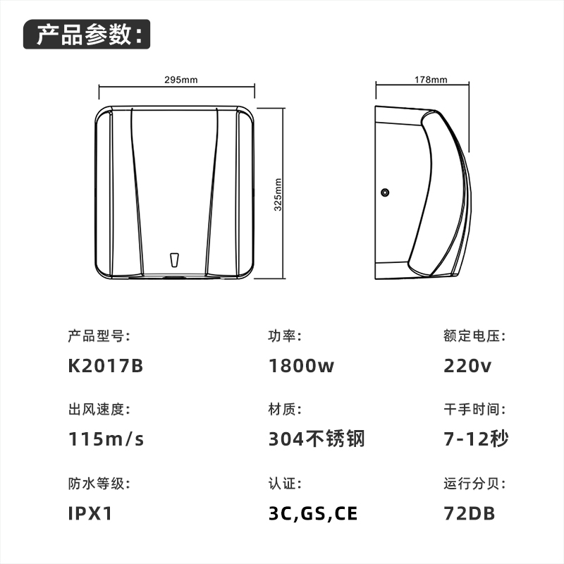 Dryer automatic induction blowing hand dryer toilet dryer dryer commercial high-speed stainless steel dryer
