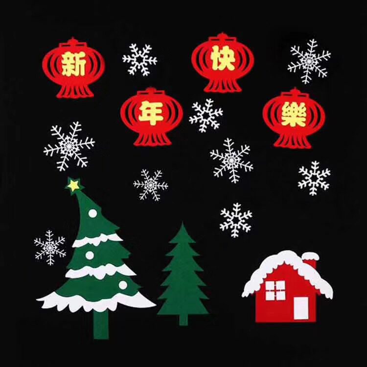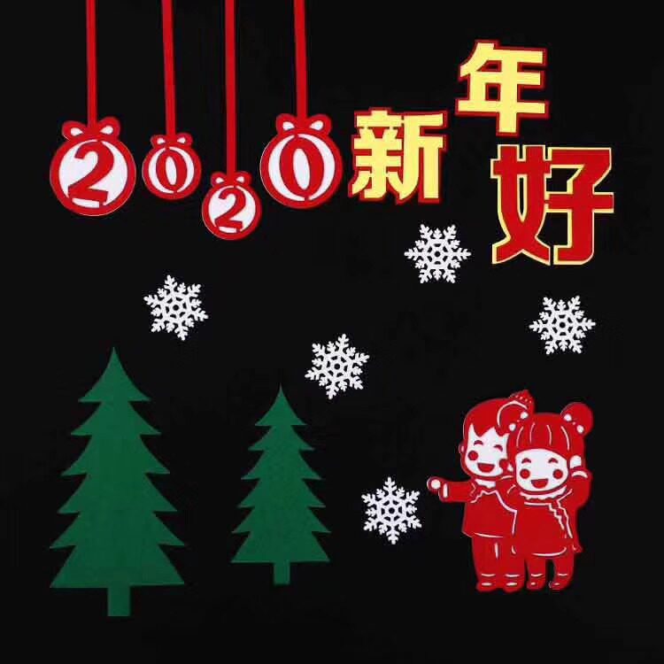 Kindergarten Classroom Corridor Area Corner Black Board Newspaper Arrangement New Year Happy New Year's Day Chinese Wind Decoration Unwoven Joyry