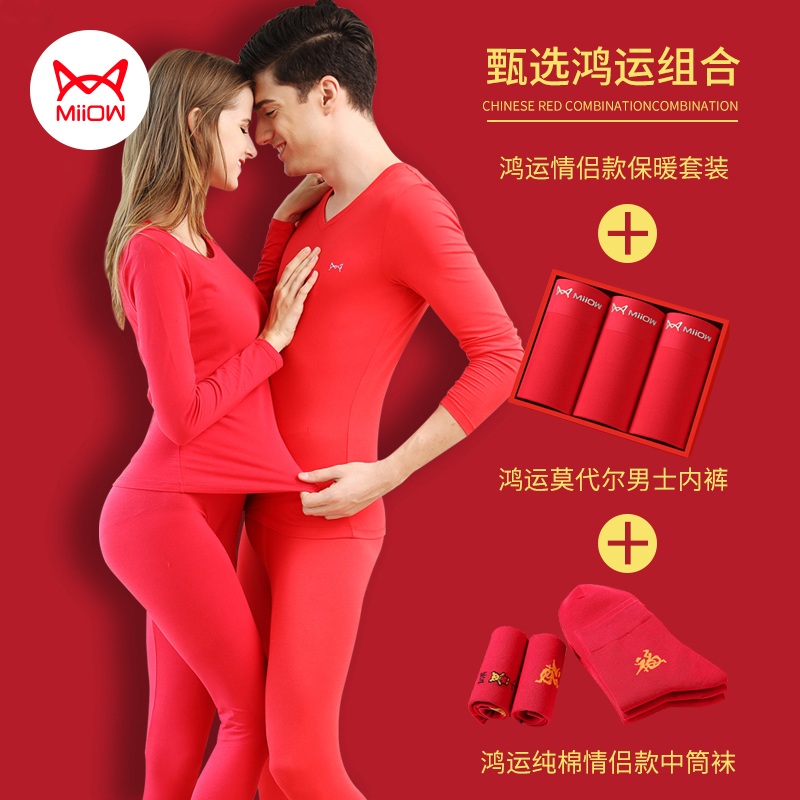 Cat autumn sweater female pure cotton suit fitted tight man red underwear is the tiger's life red blouse