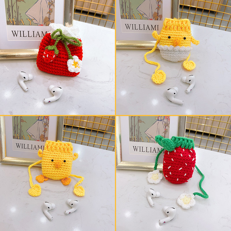 Wireless Bluetooth headphones Universal white lace strawberry (without silicone cover without headphone with charging hole) wireless Bluetooth headphones Universal green leaf money bag style strawberry (without silicone cover without headphones