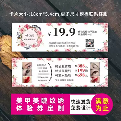 Nail art eyelash semi-permanent tattoo embroidery experience activity card Opening extension customer promotion experience card discount voucher design