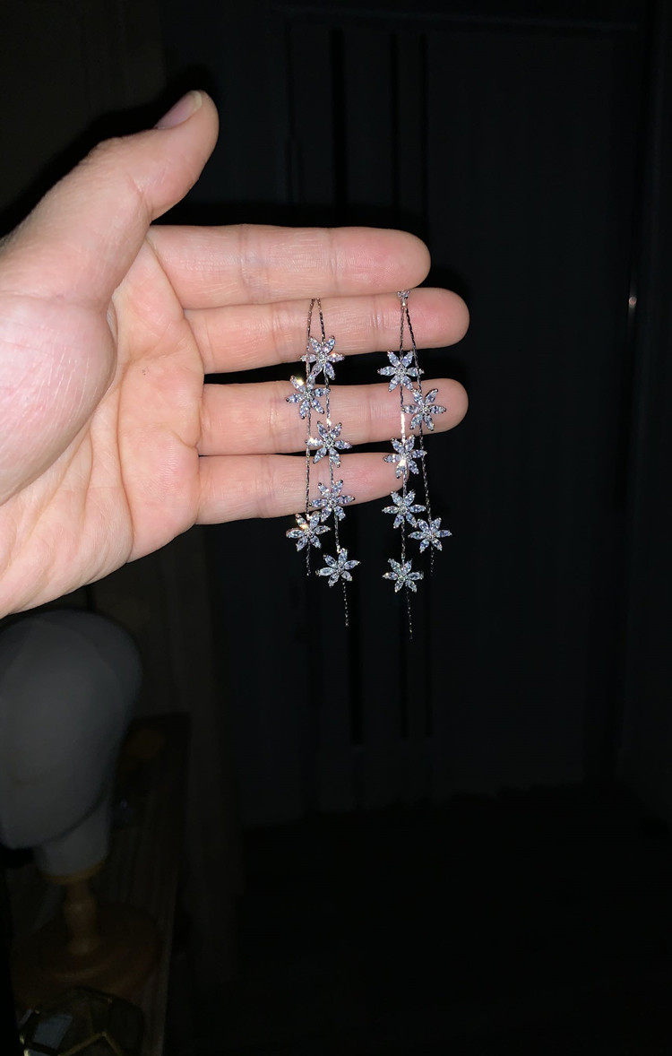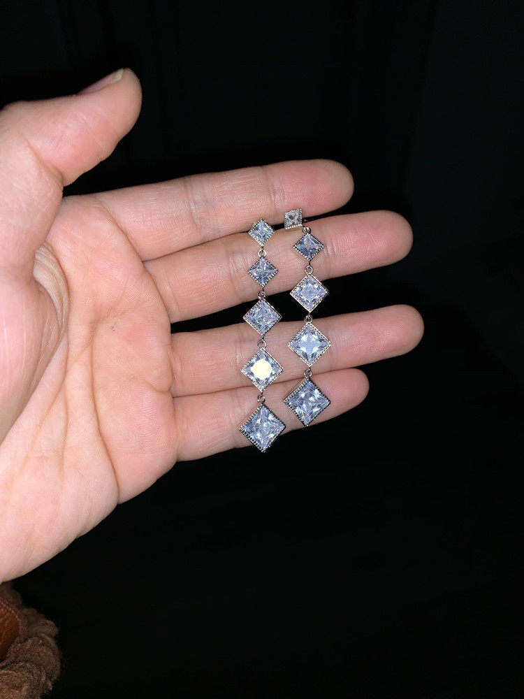 Knocking high-end zircon earrings bride's annual meeting jewelry earrings dress earrings long sparkling tassel earrings