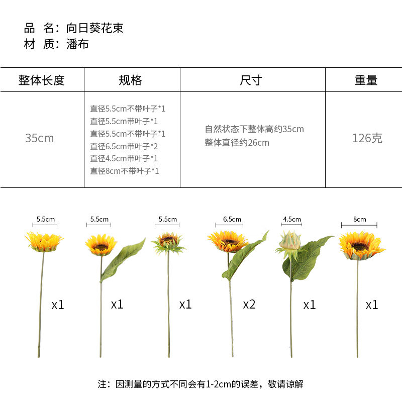 Sunflower Emulation Bouquet Picnic Camping Ins Wind Decoration Photo Furnishing props per bunch of 7