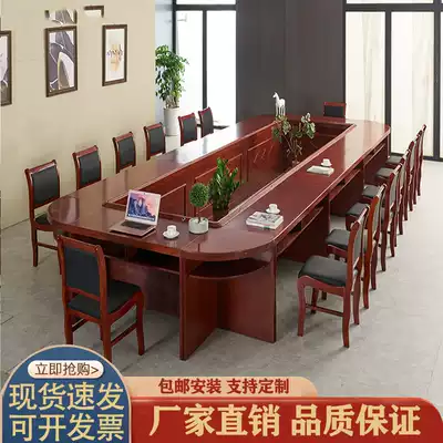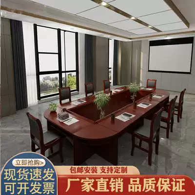 Office conference table long table Oval solid wood staff double training long table size meeting room table and chair combination