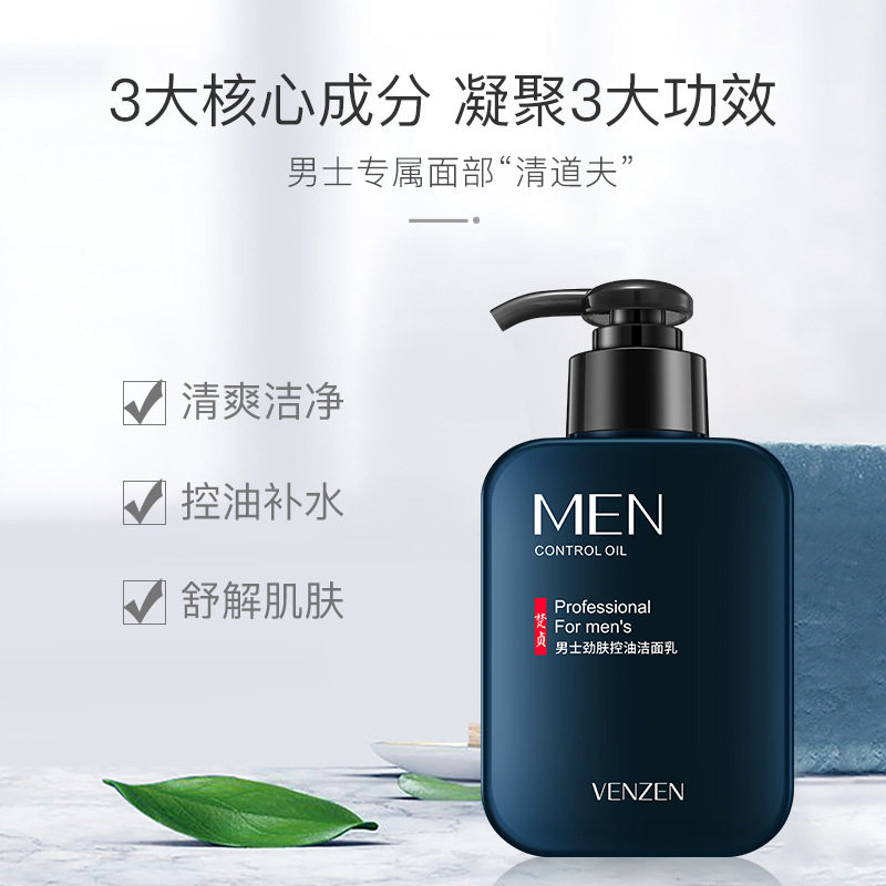 Fanzhen Men's Strong Skin Oil Control Facial Cleanser Refreshing Cleansing Oil Control to Remove Mite Acne Acne Men's Facial Cleanser