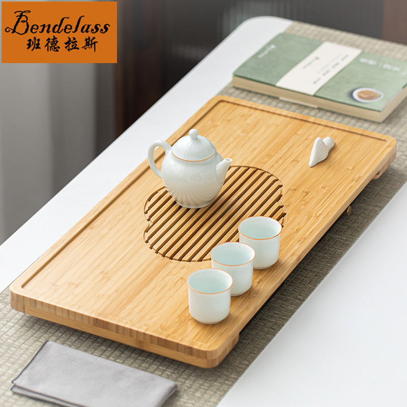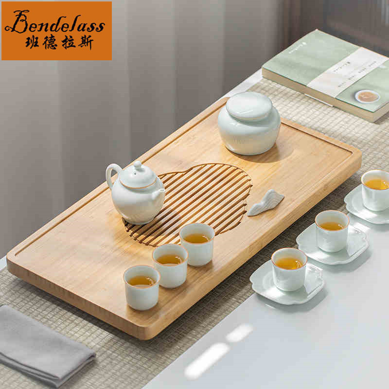 Kongfu tea with small teapot tea tray made of bamboo drain ceramic cute tea table Home Japanese style lid bowls small tea table brief
