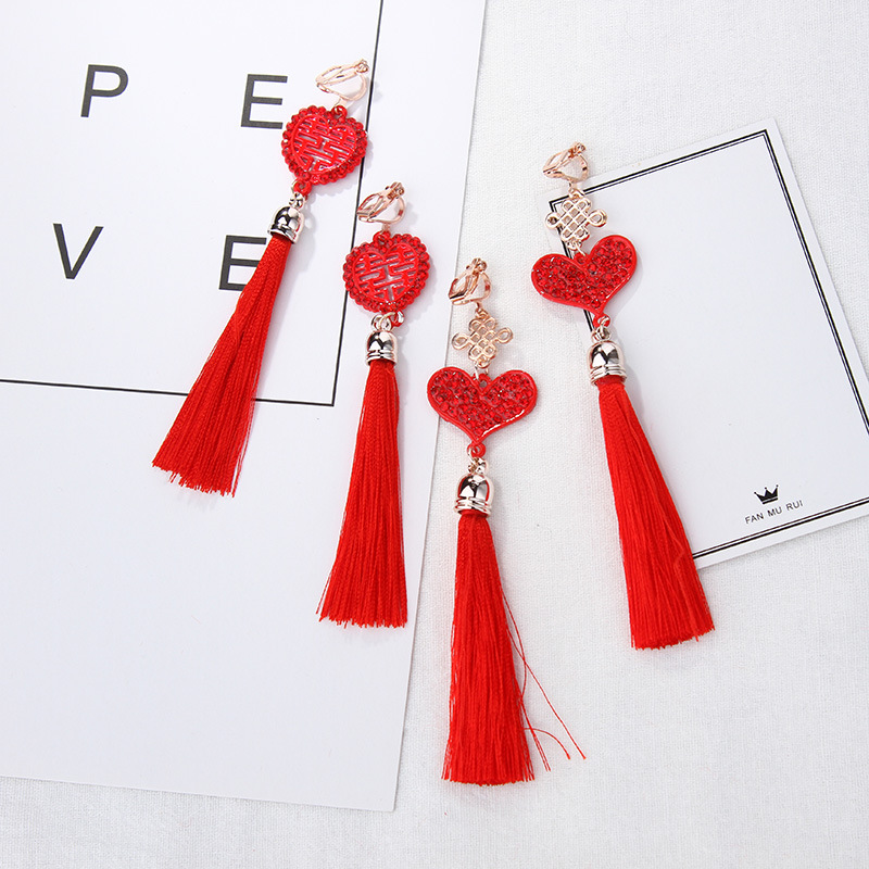 Fresh Palace Tine Hanfu Ancient Wind Ear Clip Retro Fashion China Knot Red Flow Suearrings New no earbueless earrings